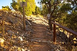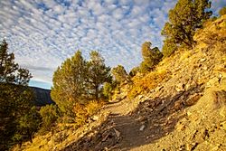 This is the longest and most physically challenging trail in the park, but it is arguably the most beautiful. It runs along the western side of Enchanted Mesa, a beautiful flat top pasture that harbors Mule deer and elk. This 2.5-mile trail is the only non-motorized link between the Pa-Co-Chu-Puk area on the north side of the park and the Dutch Charlie area.