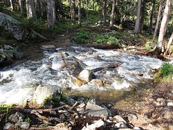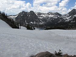 This difficult ~10.5 mile loop’s highlight is Gilpin Lake, named for Governor William Gilpin, is one of the most popular destinations within the Mount Zirkel Wilderness. It offers a 29 acres of blue alpine lake of magnificent beauty and views of the nearby Sawtooth Range. The trail winds through thick forests of conifer trees, wildflower meadows and avalanche paths following Gilpin Creek most of the way up to the lake. Gold Creek lake, another scenic lake is also found on the loop.