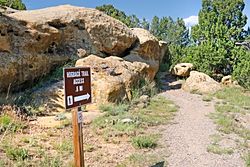 The Hogback Nature Trail is a 1.5 mile loop. The trail winds through sandstone formations and then climbs up the rocky Hogback Ridge that forms the park’s northern boundary. As the trail follows the top of the ridge, majestic views of the Spanish Peaks, Sangre de Cristo and Wet Mountain Ranges can be enjoyed. Along the two-mile trail, marker posts have been installed to accompany a self-guided brochure containing information about the area’s plant and animal life and its history. The brochures are complimentary and are available at the trailhead.