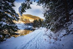 This easy scenic ~1.5 mile trail circles the beautiful Sylvan Lake. Each side of the lake has its own beautiful views as providing fishing access and personal watercraft access around the entire lake. The trail can be extra scenic in the fall when the Aspen turn to yellow.