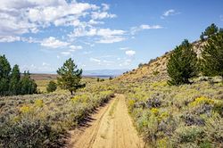 The North Sand Hills are a unique area of sand and dunes set below the peaks of the Rawah wilderness. There is also access to the dunes from the north side on BLM land. The trail to the dunes goes between open sagebrush with good views of the valley and aspen groves.