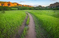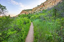 The South Rim trail is a very scenic 2.75 mile loop trail through the southern part of the park. It can be done from either the main state park trailhead or the willow creek trailhead. The main trailhead offers a few more red rocks to wind through but either is scenic and offers the chance to enjoy the parks flora and fauna. The back side of the loop offers the best views while the flowers and wildlife are best on the front side, meaning there is always something to enjoy.