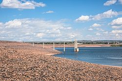 The Chatfield Dam Trail is a 2.25 mile out and back trail that crosses the entirety of the Chatfield dam. On either end, it can be combined with the Chatfield perimeter trail for a longer outing. No shade, but nice views of the adjacent foothills are all along this trail.