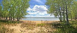 The Smoky Hill Trail is an easy 1.75 mile out and back trail that follows the northeast part of Cherry Creek reservoir. The trail mostly alternates between lake shore and open meadows with flowers in the summer. It also connects multiple parking lots/day use areas on that side of the lake.