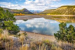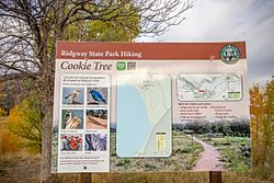 This route combine the Scenic overlook trail with the Cookie Tree Trail, making for a 1.2 mile out-and-back trail that allows for great views of the reservoir and Sneffles range at the top with lakeshore access at the bottom.