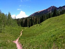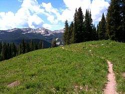 In the fall, this trail is popular for a good reason – golden aspen groves with sweeping mountain views. It is a mix of technical challenges, grueling changes in elevation, and smooth segments to breathe while taking in the landscape.